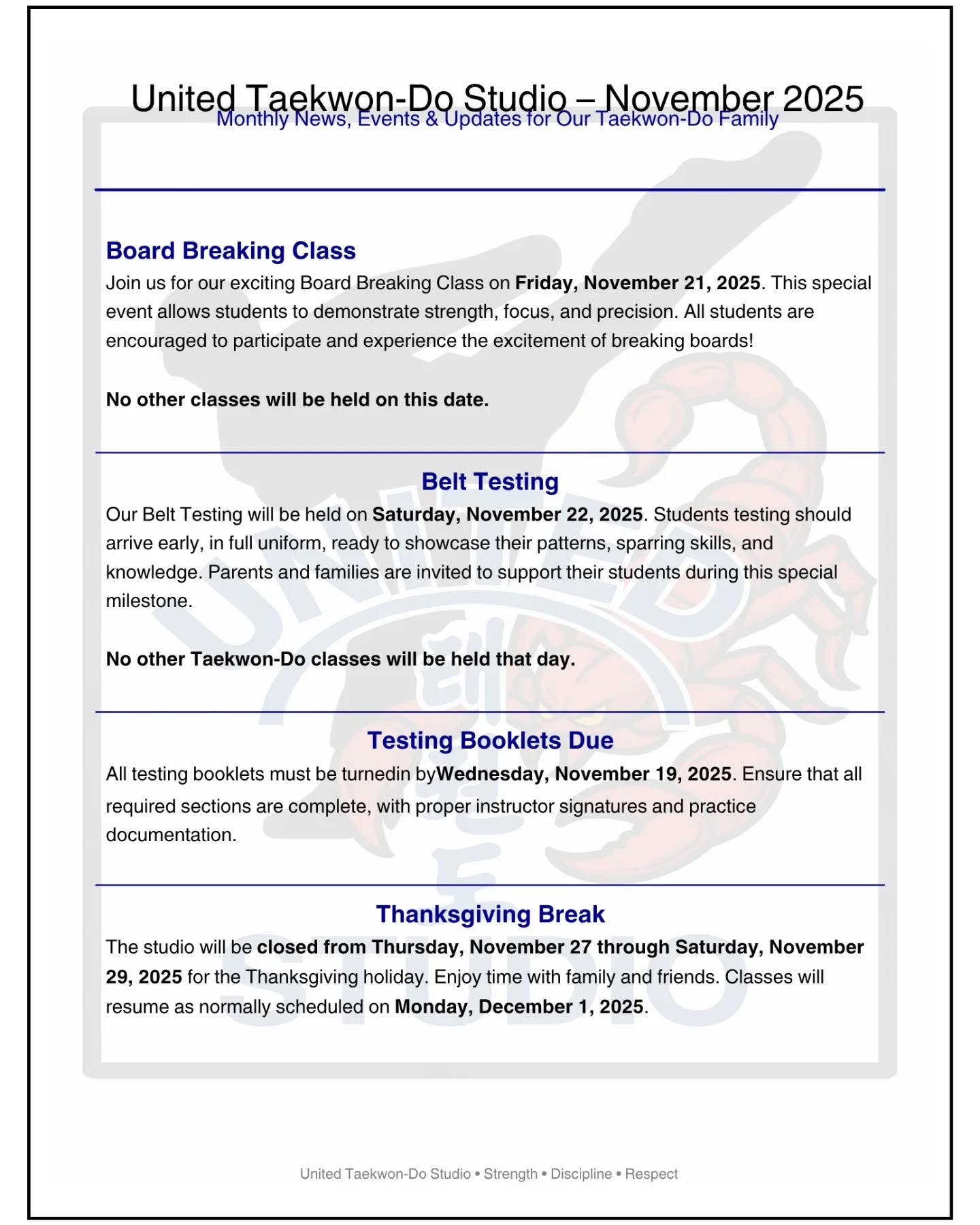 **NOTE…The class schedule is subject to change due to need, please continue to check back for any updates to the schedule.